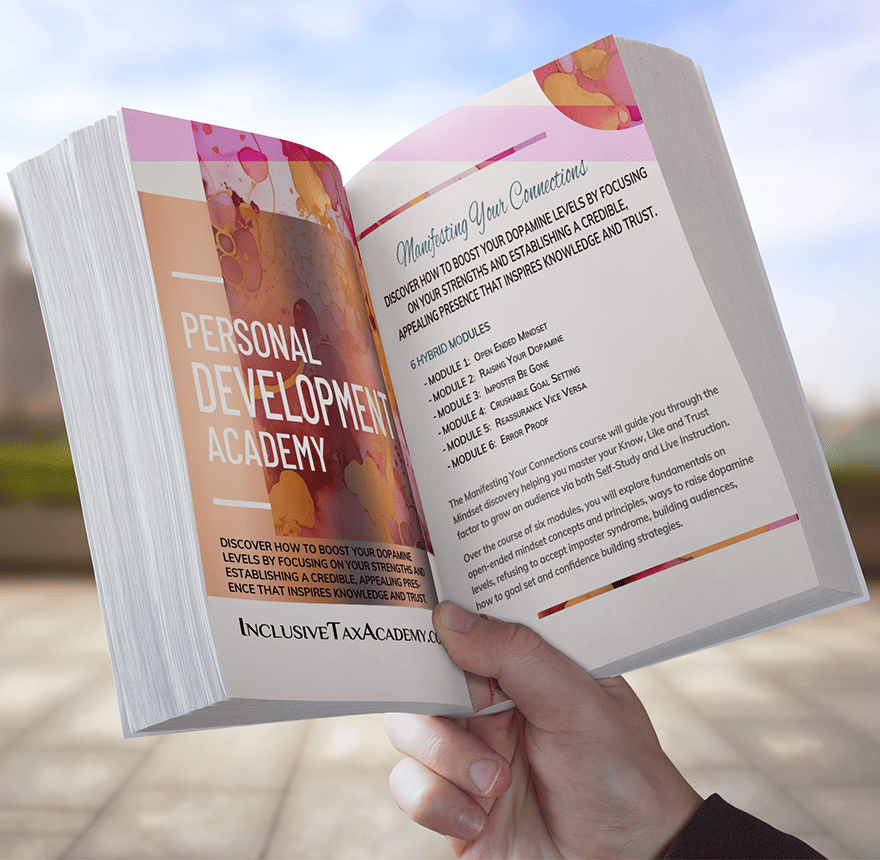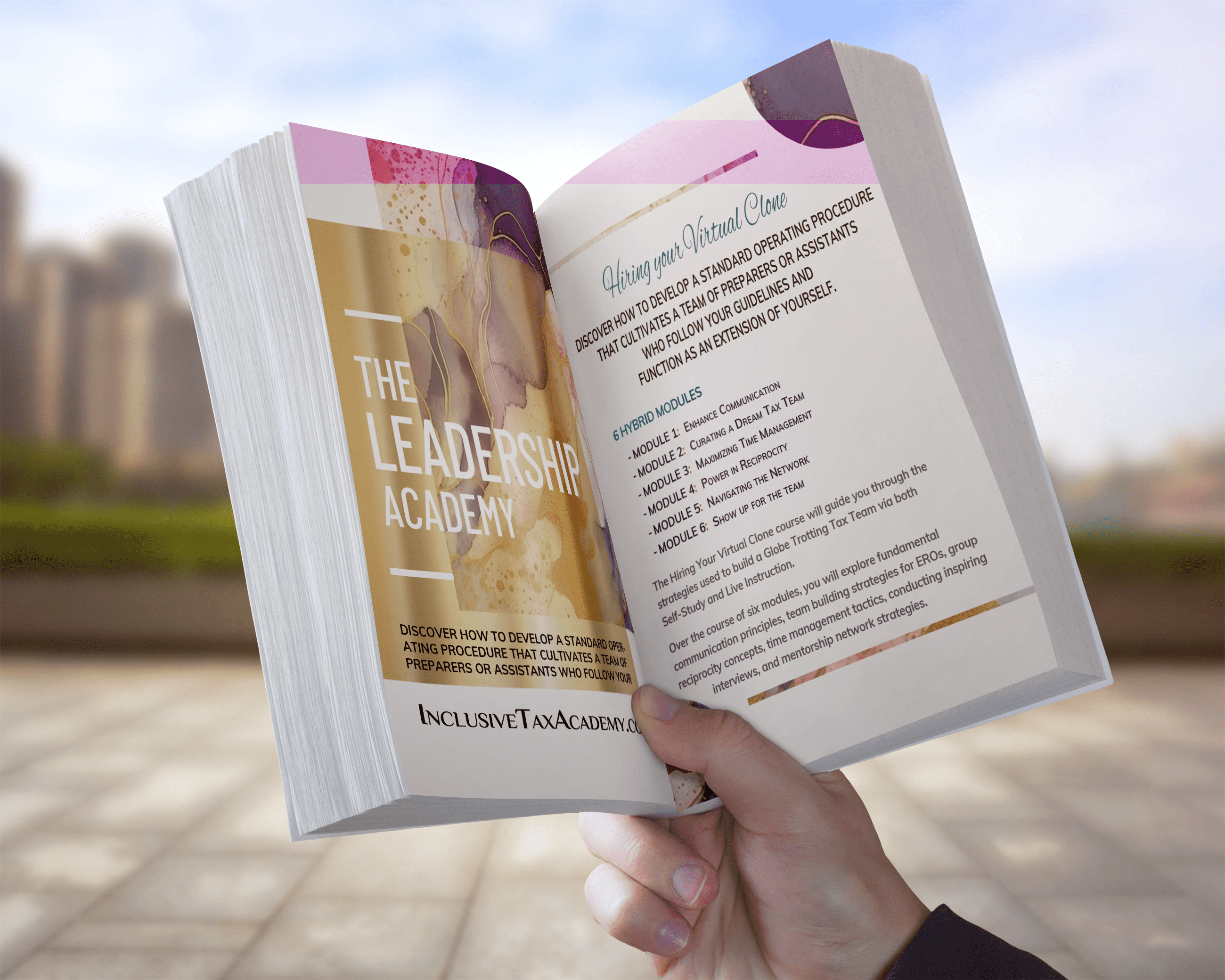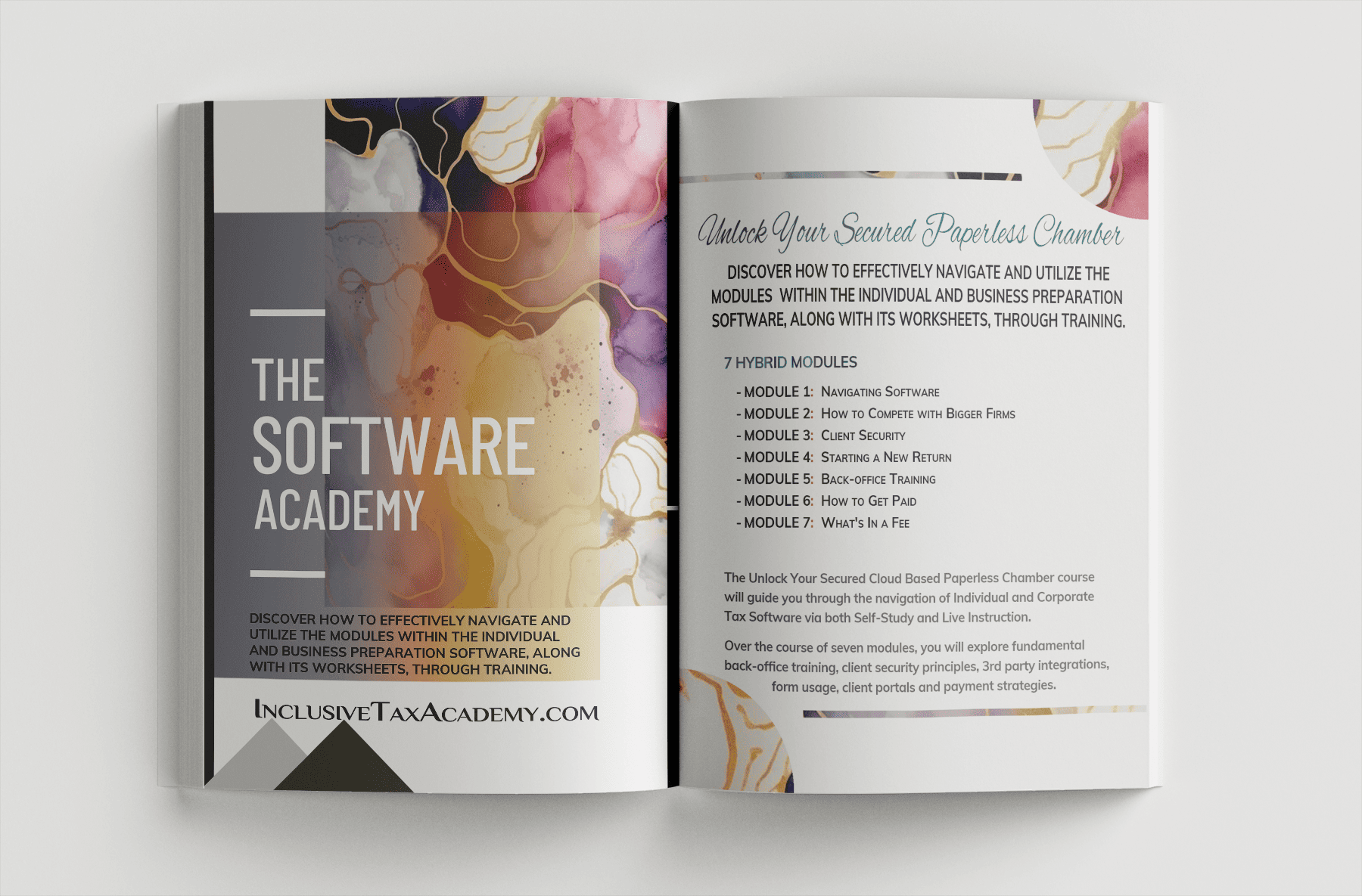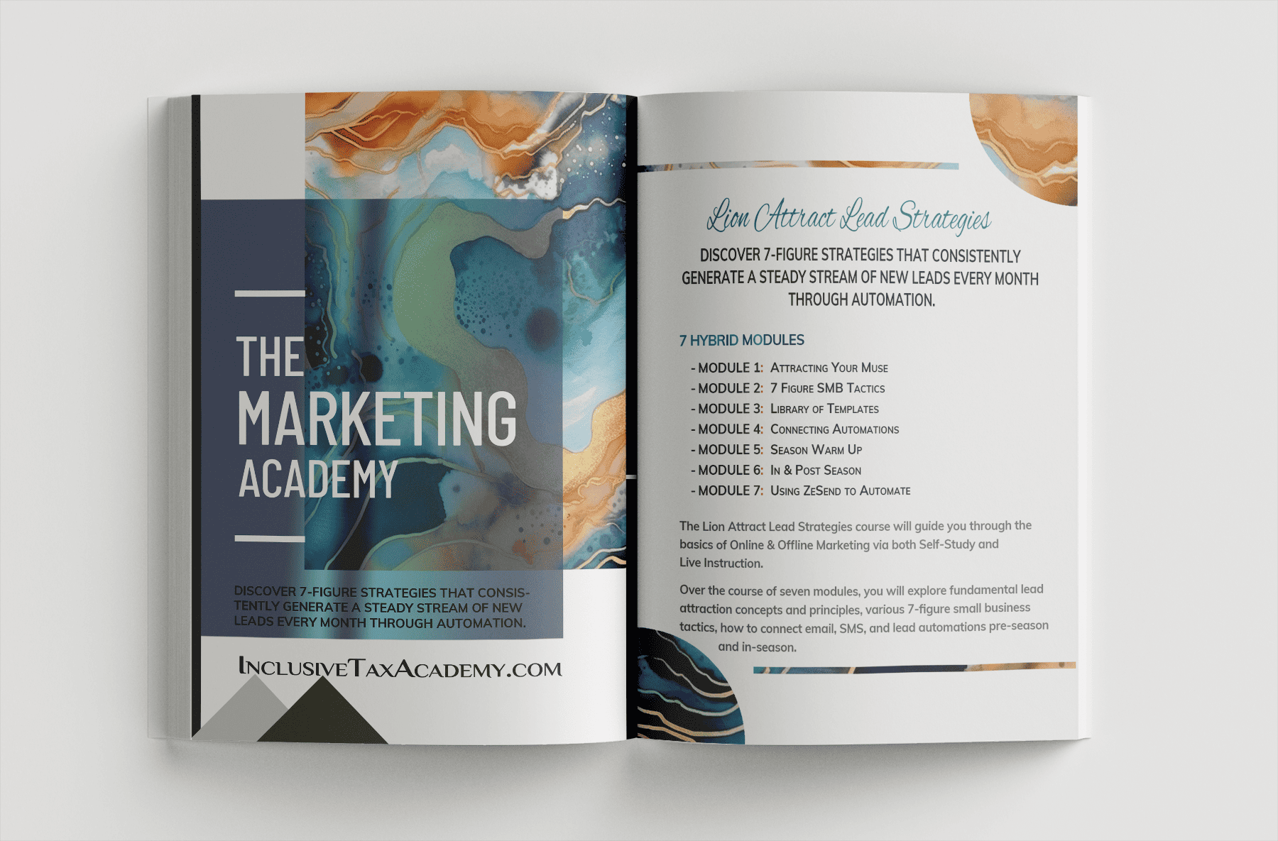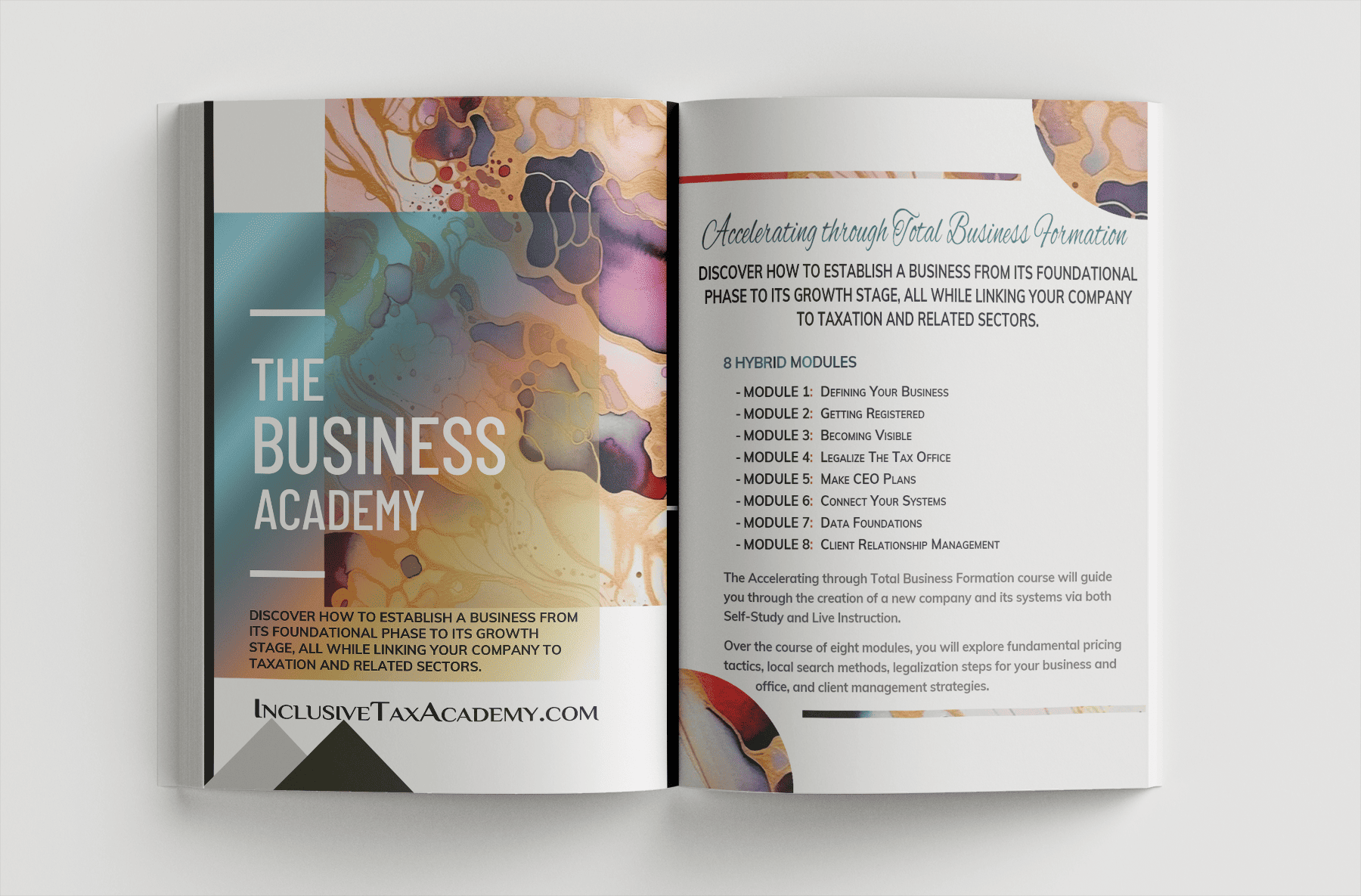 In the Business Academy, you'll learn the foundations of starting a business and on day one create your New Tax Name, as well as, understand color theory, decisions on whether you need an Engagement letter, Intake Form, etc.